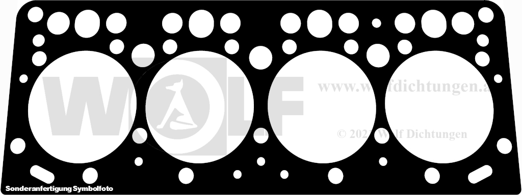 Zylinderkopfdichtung mit Einfassungen, WB-Brille samt Verstärkung brillenseitig und 6 runden Ösen