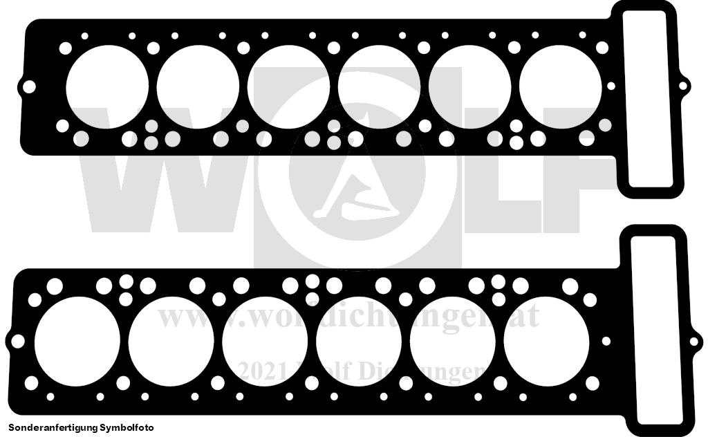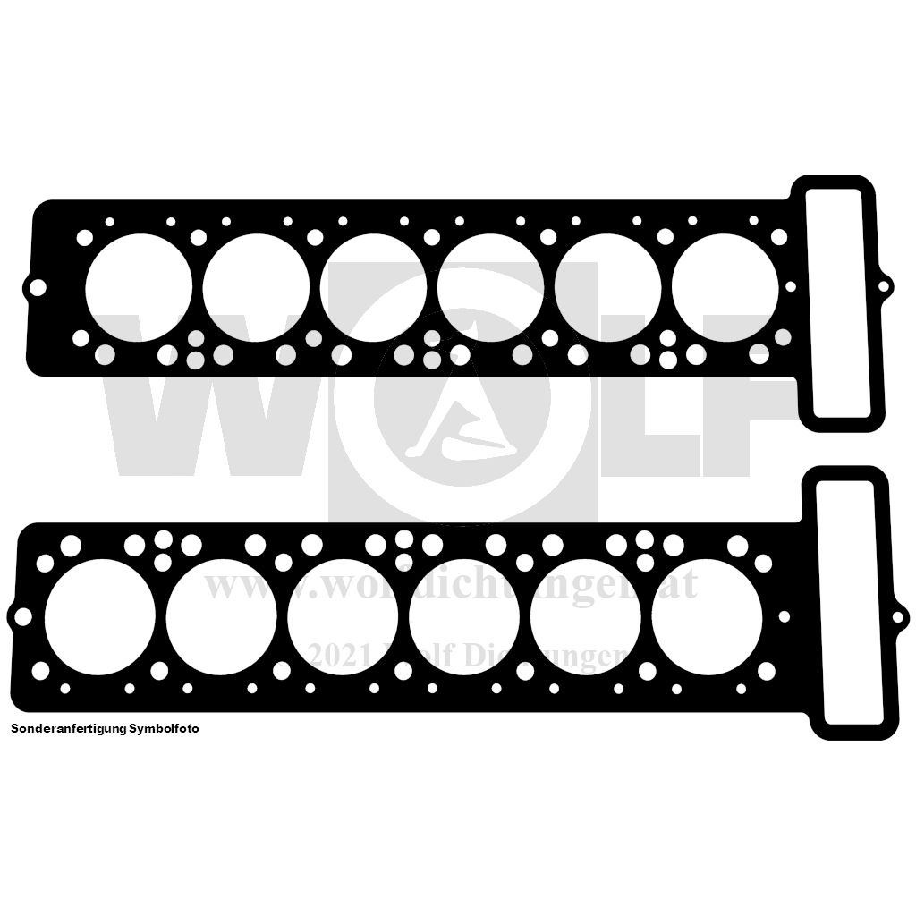 Zylinderkopfdichtung mit Einfassungen, beidseitig mit Kupfer belegt und 9 runden Ösen